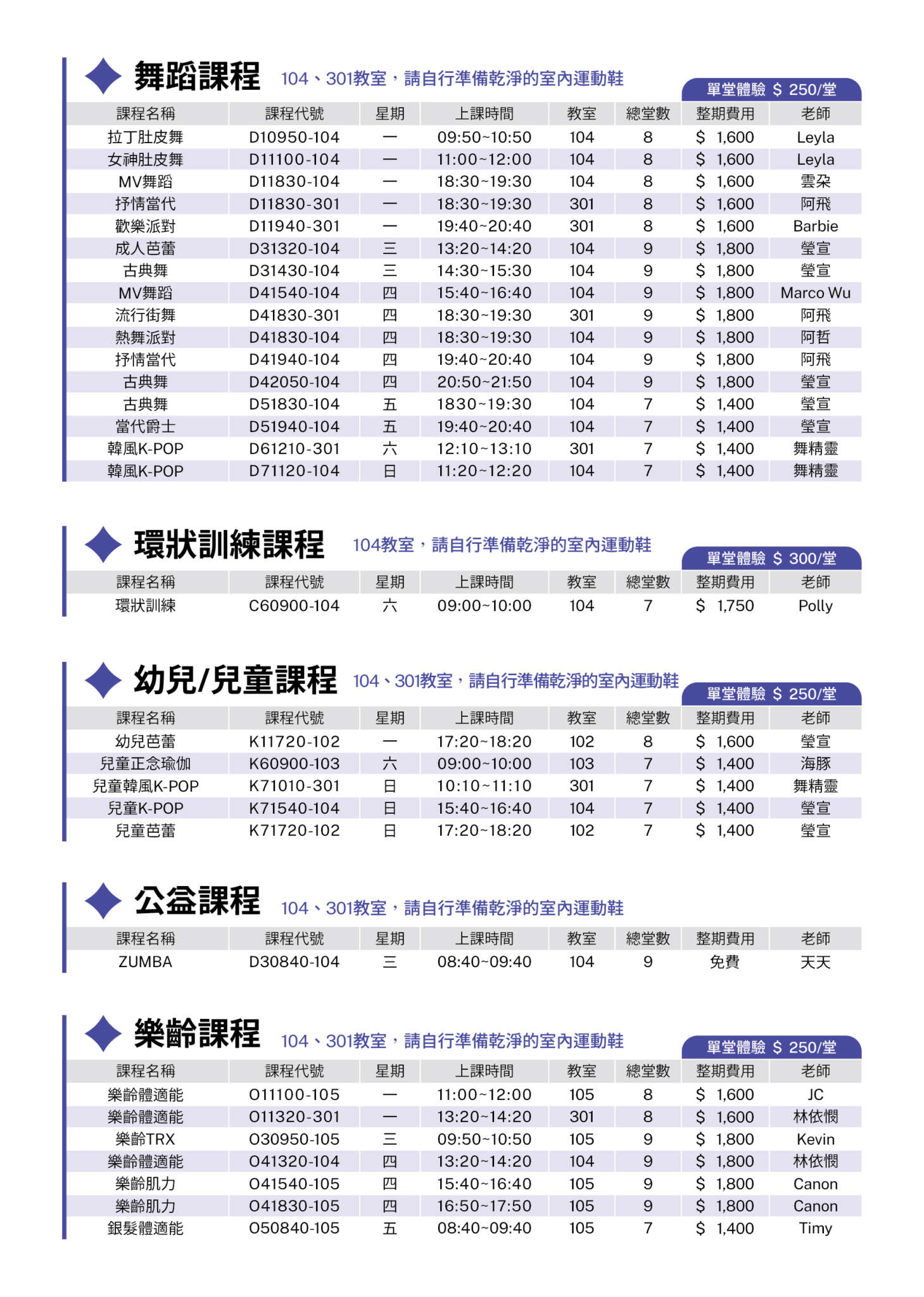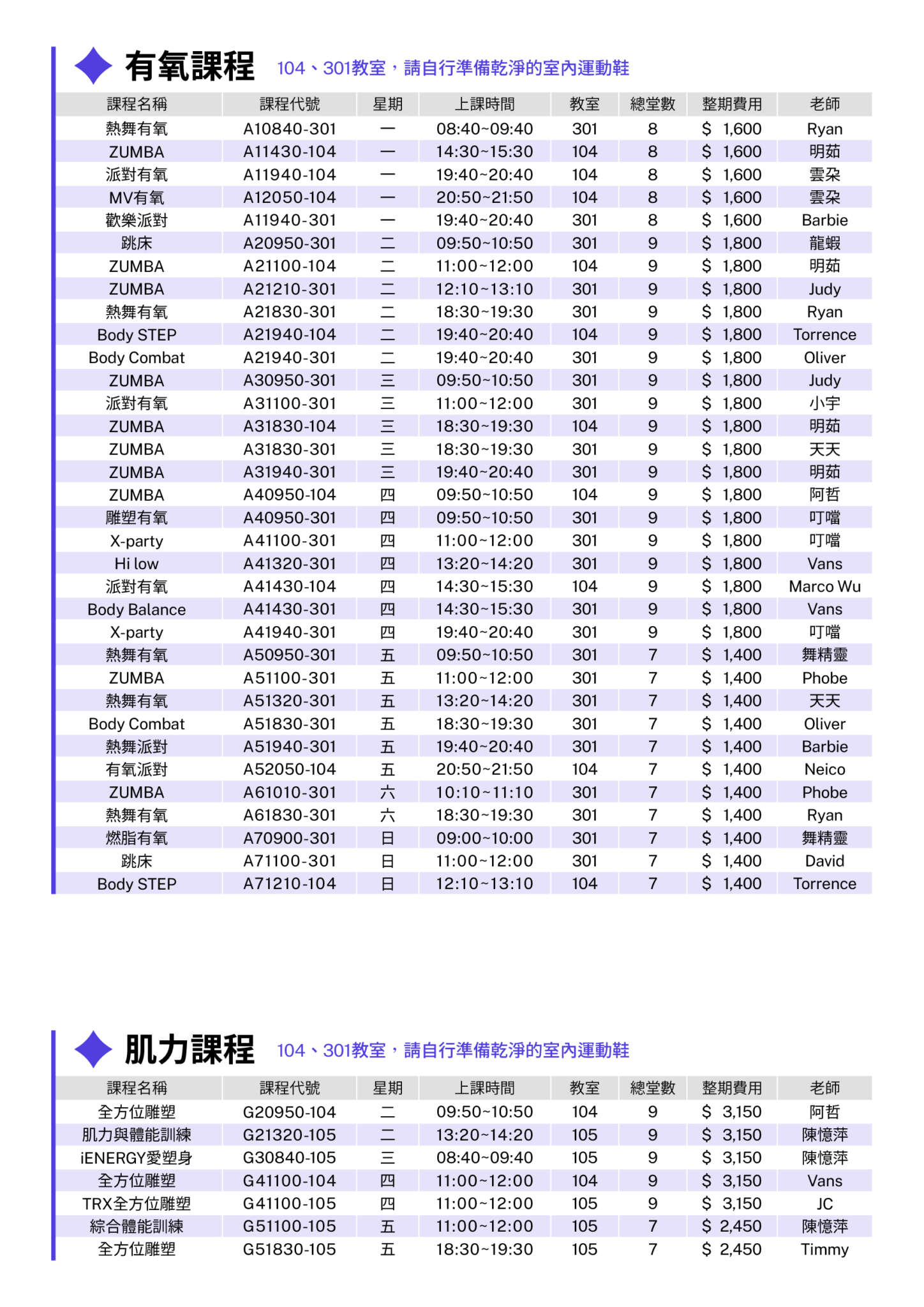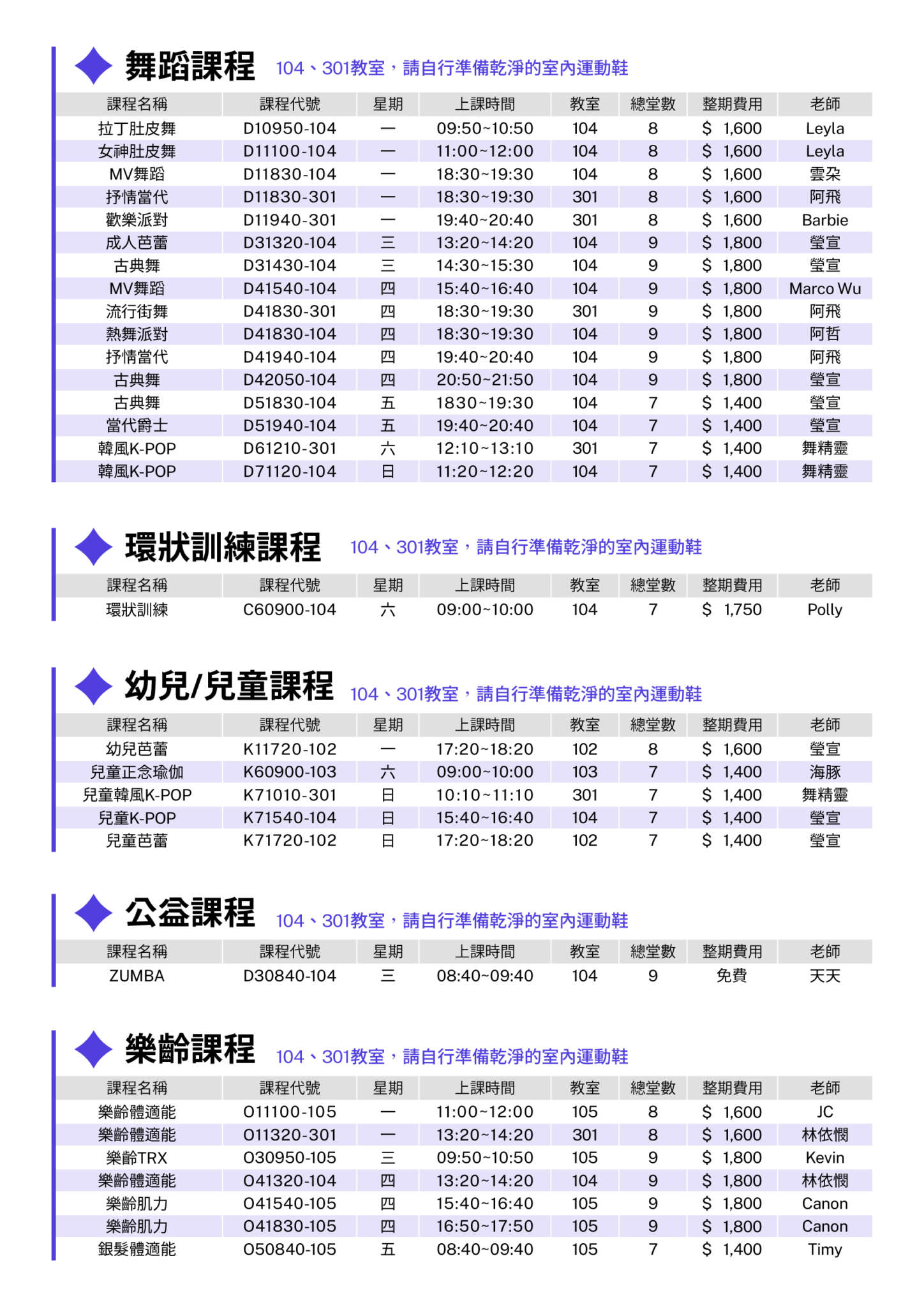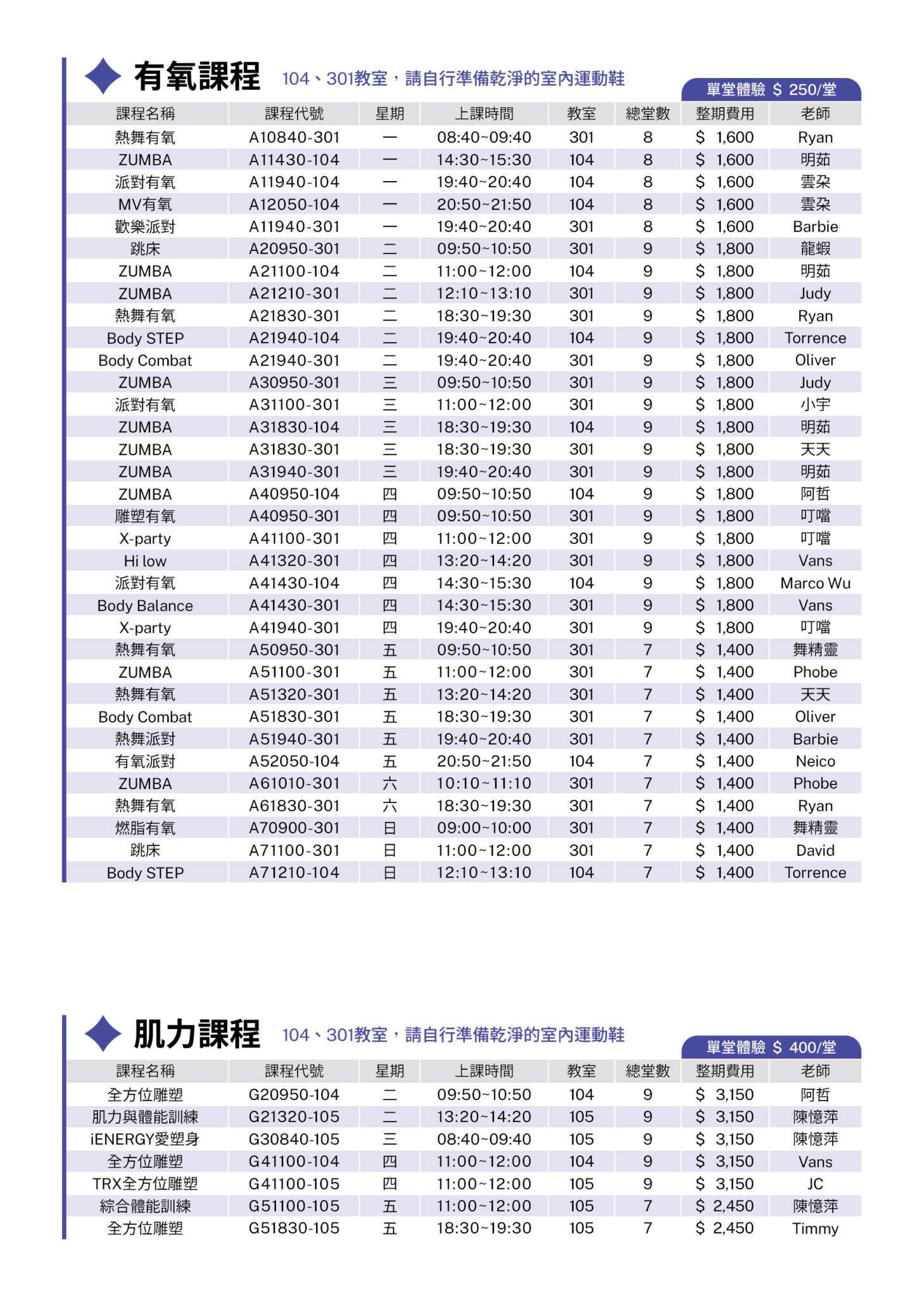 2026-01-30 淡水國民運動中心 in 最新活動 29132 115年03月-04月期課課表 團課課程・游泳課程・球類課程 專業師資帶領,讓運動成為日常。 優惠期間 2/1 – 2/10|舊生報名 9 折 2/11 – 2/28|新生優惠 95 折 名額有限,額滿為止 課程詢問:https://lin.ee/OTgw9WP 線上報名:https://reurl.cc/vvggLj